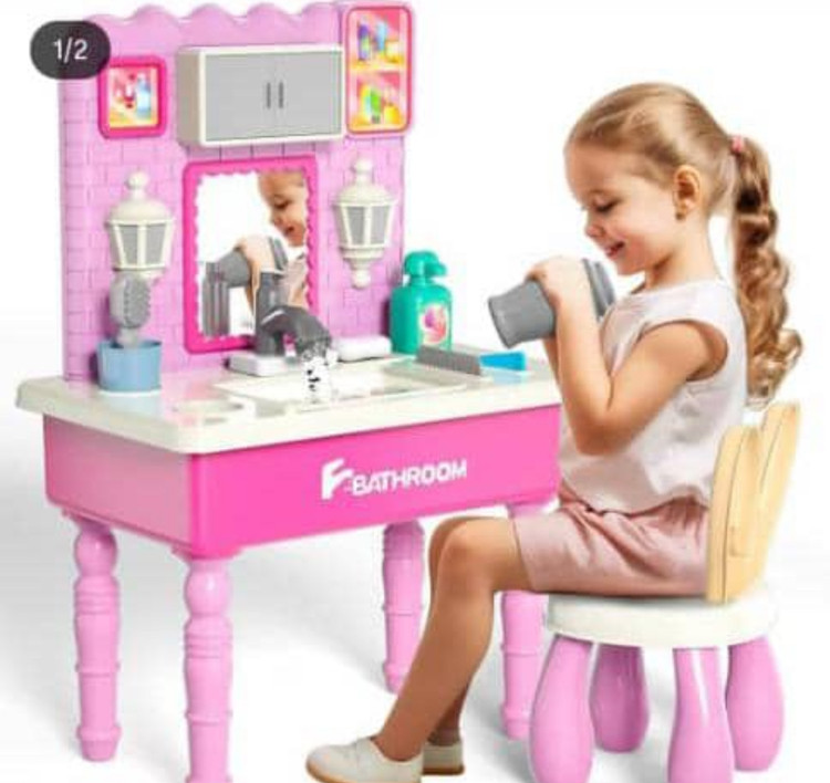 میز ارایشی کودک با صندلی و تمام اکسوریها